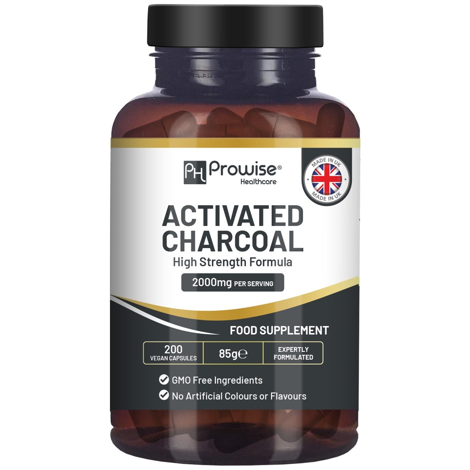 Activated Charcoal Capsules - 200 High Strength Vegan Capsules- 2000mg